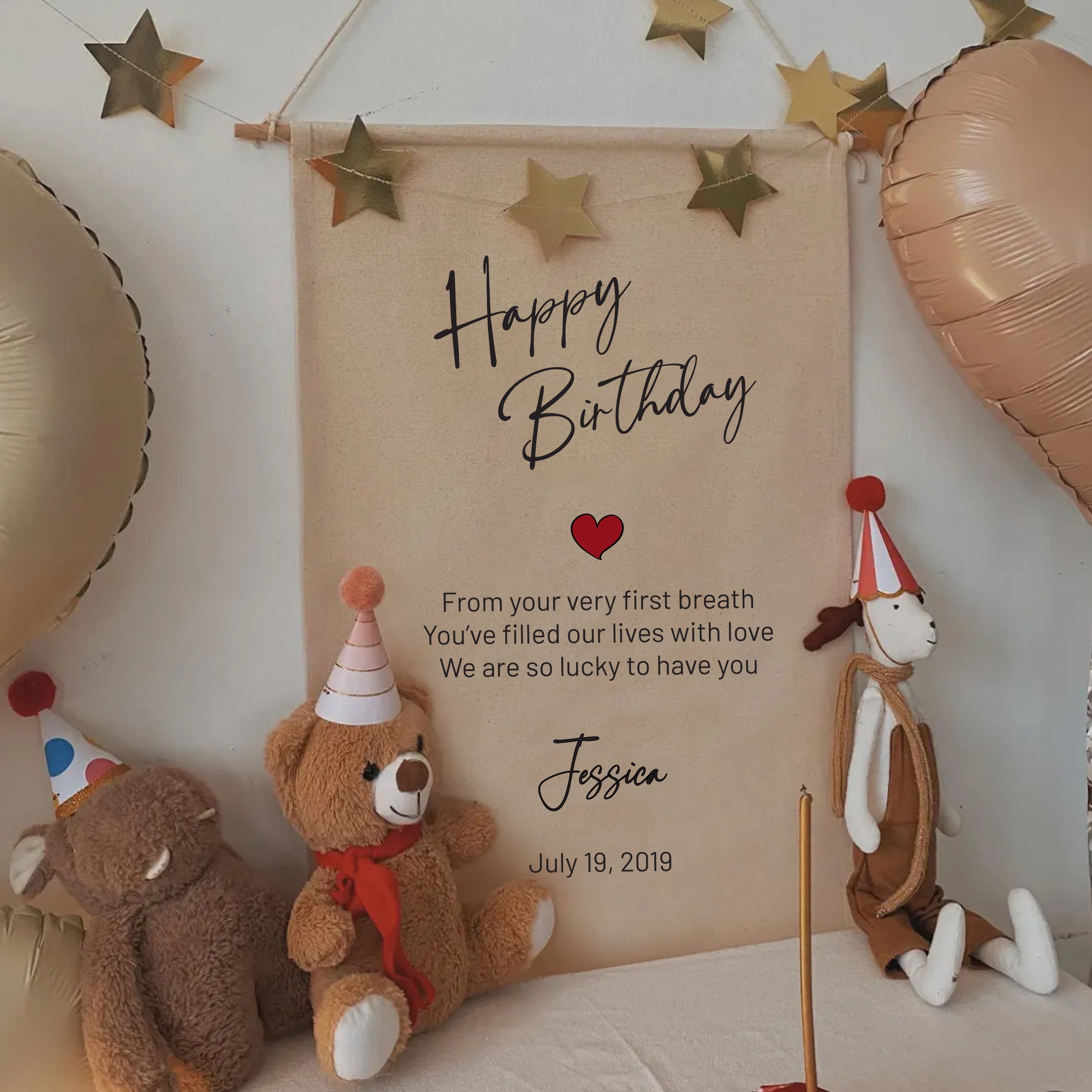 Personalized Fabric Banner – Custom Birthday Sign With Boho Canvas Decor & Wooden Frame