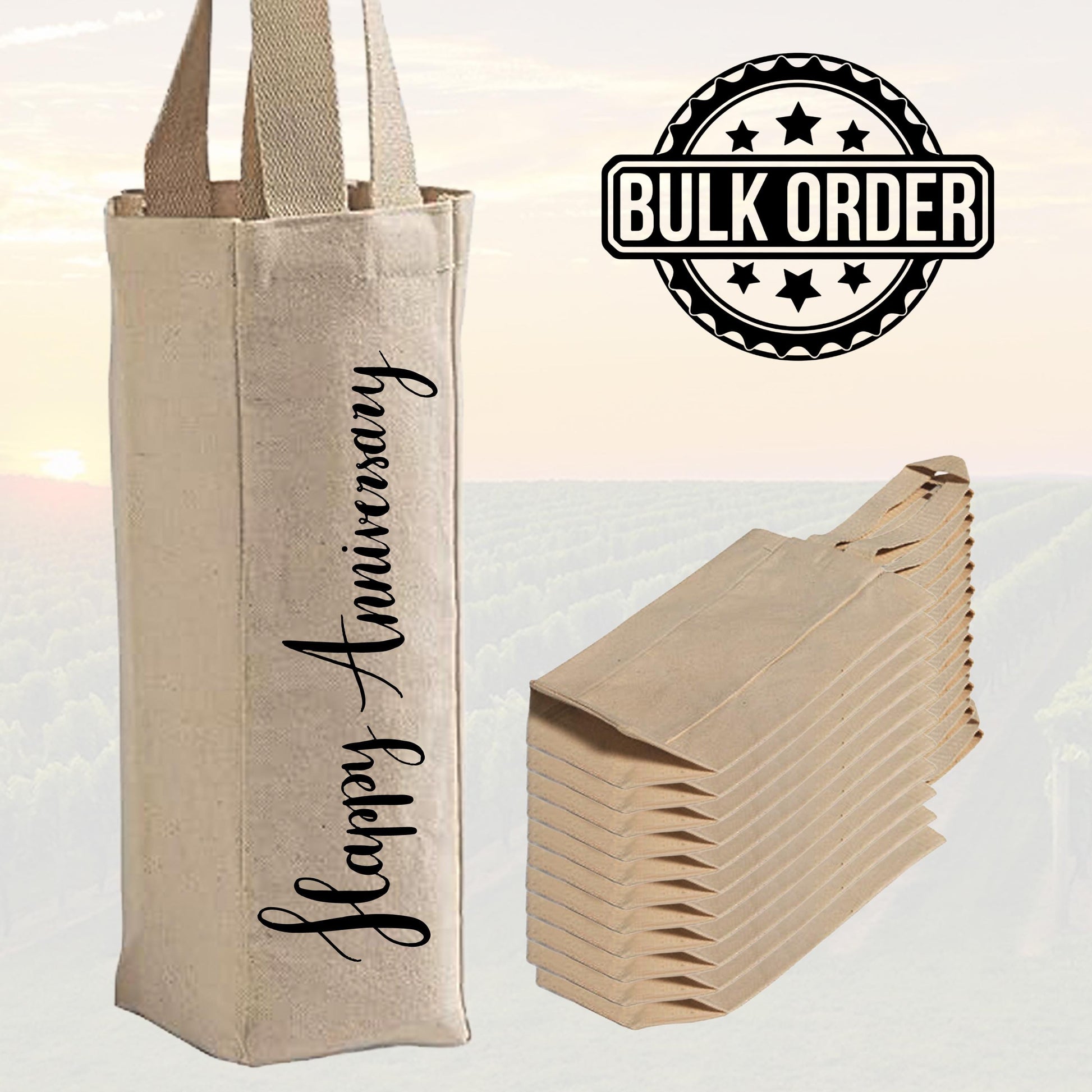 Canvas Wine Tote Bag – Custom Cotton Reusable Wine Carrier | Wedding Favor Gift